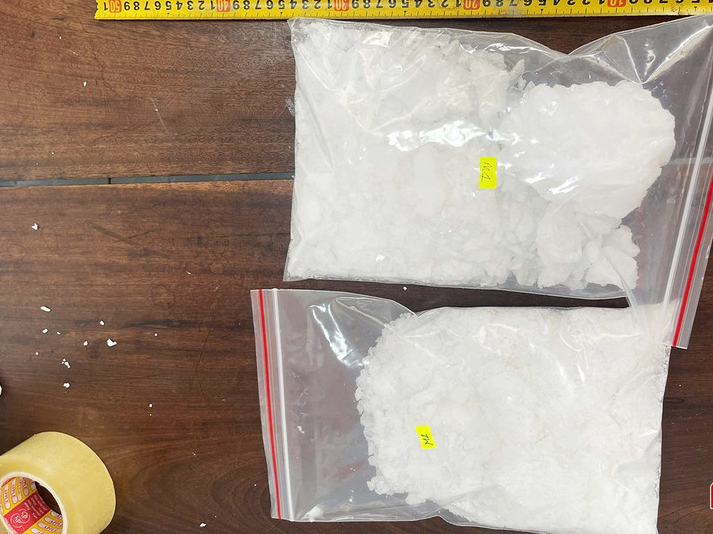 Kiểm tra tại hiện trường, lực lượng chức năng thu giữ 2 túi ni lông chứa chất ma túy loại Methamphetamine, tổng khối lượng gần 2 kg.