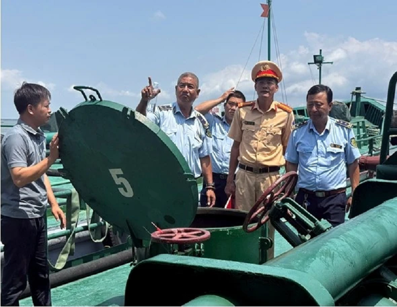 Tại hiện trường, cơ quan chức năng đã phát hiện và tạm giữ tang vật là dầu DO không rõ nguồn gốc, xuất xứ đang chứa trên 2 tàu với tổng khối lượng trên 10.000 lít. Qua đấu tranh xác định hành vi vi phạm của các đối tượng có liên quan, thuyền trưởng của 2 tàu đã thừa nhận hành vi vi phạm kinh doanh dầu không rõ nguồn gốc xuất xứ, không có Giấy phép kinh doanh xăng dầu theo quy định.