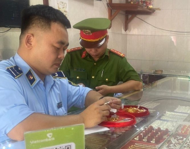 Lực lượng chức năng kiểm tra một cửa hàng kinh doanh vàng