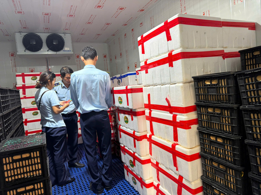 Cụ thể, xe tô tô nhãn hiệu Ford Transit, biển kiểm soát: 14B-038.00 do đối tượng Nguyễn Văn Lương (15/11/1992), trú tại: Khu 5, phường Móng Cái 3, tỉnh Quảng Ninh điều khiển, tại thời điểm kiểm tra phát hiện trên xe chở 600kg lườn ngỗng đông lạnh, 1200 kg trứng gà non đông lạnh, 600kg nầm lợn đông lạnh.