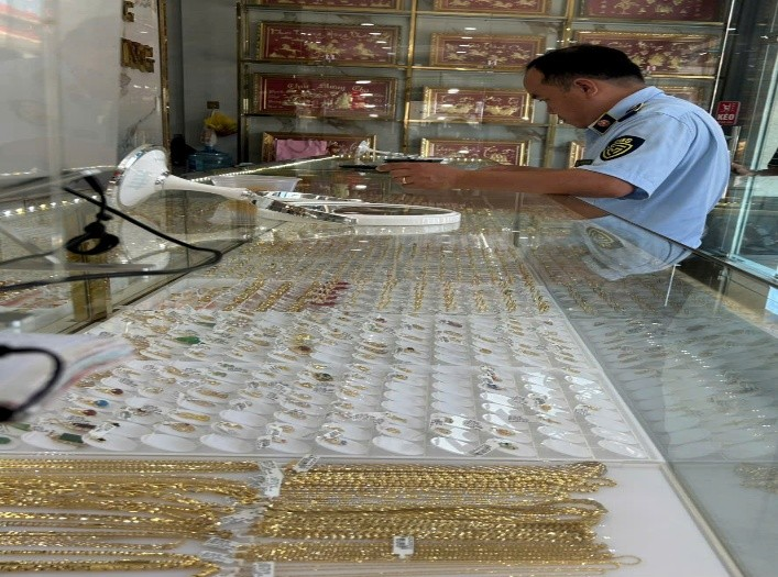 Qua làm việc, Đoàn kiểm tra đã lập hồ sơ, biên bản vi phạm hành chính đối với Công ty TNHH một thành viên tiệm vàng M.H về hành vi "Kinh doanh hàng hóa không rõ nguồn gốc, xuất xứ".